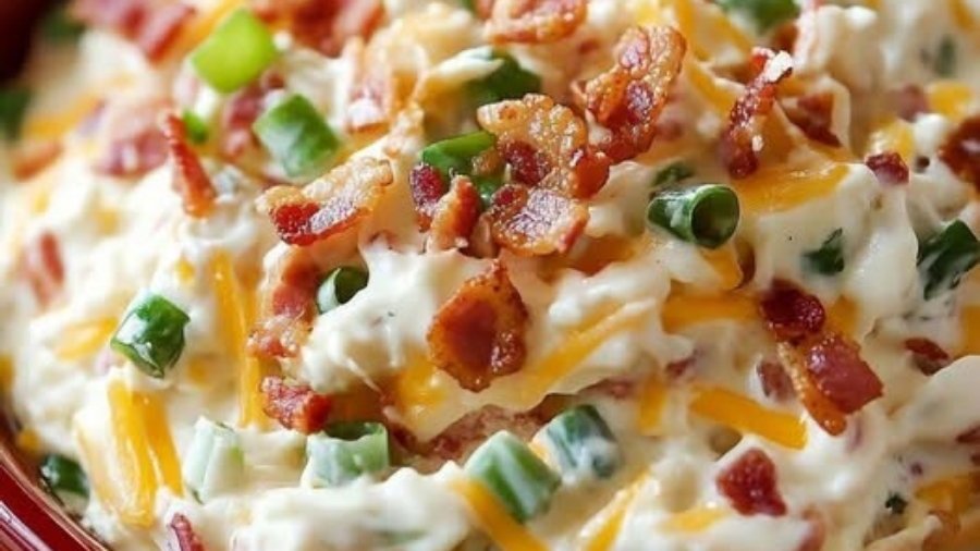 This bacon ranch dip is the ultimate combination of creamy, savory, and crunchy. The rich texture of the cream cheese and sour cream pairs beautifully with the salty bacon and tangy ranch seasoning. The green onions add just the right amount of freshness, making each bite satisfying and full of flavor. Whether you’re serving it at a party or simply enjoying it as a late-night snack, this dip is a surefire hit every time.